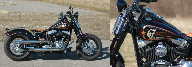 67 Bobber Die Twin Tec Crossbones Heckfender, Sattel und Rücklichte von Twin Tec, Lenker und Riser natürlich auch ! Die KessTech Anlage und den Gepäckträger haben wir zusammen mit Jürg Schmid etwas 'verschönert' Airtec-Design ist für die artgerechte Lackierung verantwortlich. Ein paar mehr Ansichten: V1 V2 |