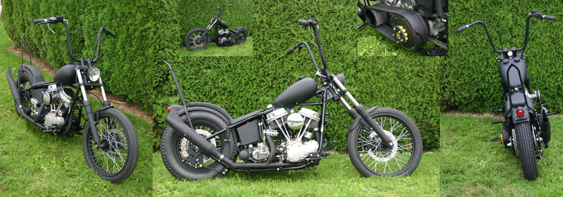 - old school - starr, hart und matt - open Belt, RST Bremsen - Mustang Tank, Flat-Fender und Twin Tec Sissibar fürs Gepäck - 2in1 Suppertrapp-Anlage - komplett in matt schwarz pulverbeschichtet, diverse Details wie Horn-Membran in 'dezentem' Gelb