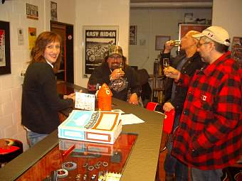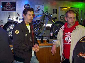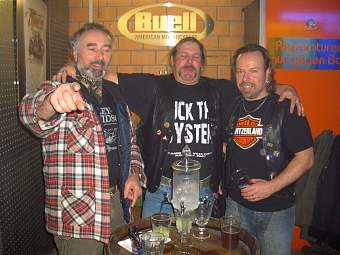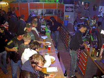 Jubiläumsfeier 2 Jahre Einmal mehr eine Feier bei Twin Tec in der Werkstatt. Diesmal zum 2 jährigen Bestehen ! Die akustische Untermalung kam von Reverend Beat-Man und dann später noch vom Haus-DJ Jüre. Insgesamt wurden 190l Bier, 5l Absinth und etwas Weniges an Mineralwasser konsumiert. Als Bödeli und zwischendurch wurden dann noch 172 Bratwürste und 15kg Kartoffelsalat vertilgt. Da verschlägt es mir die Sprache ... daher auch kein Text zu den Bildern: |